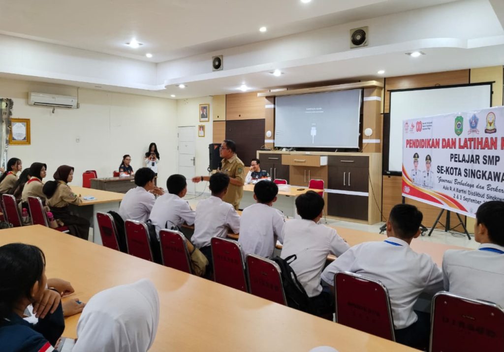 Singkawang – Sebanyak 42 pelajar SMP se-Kota Singkawang mengikuti Diklat Kepemimpinan Pelajar dengan tema “Generasi Berbudaya dan Berkarakter”. Kegiatan ini digelar di Aula R.A. Kartini Dinas Pendidikan dan Kebudayaan Kota Singkawang pada Selasa dan Rabu, 2–3 September 2025. Diklat terselenggara berkat kerja sama Saka Widya Budaya Bakti (SWBB) Kota Singkawang bersama Dinas Pendidikan dan Kebudayaan Kota Singkawang.